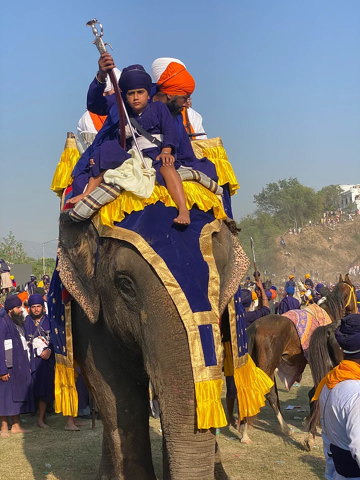 I have come to witness Hola Mohalla — the three-day Sikh festival that coincides with the festival of colours, Holi. Started in 1701 by the tenth Sikh guru, Guru Gobind Singh, Hola Mohalla was envisioned as a wartime celebration. Mohalla literally translates to a place of attack or fictitious battle whereas, Hola is the masculine derivative of the word Holi. Together, they express the idea of a grand mock attack on Holi.