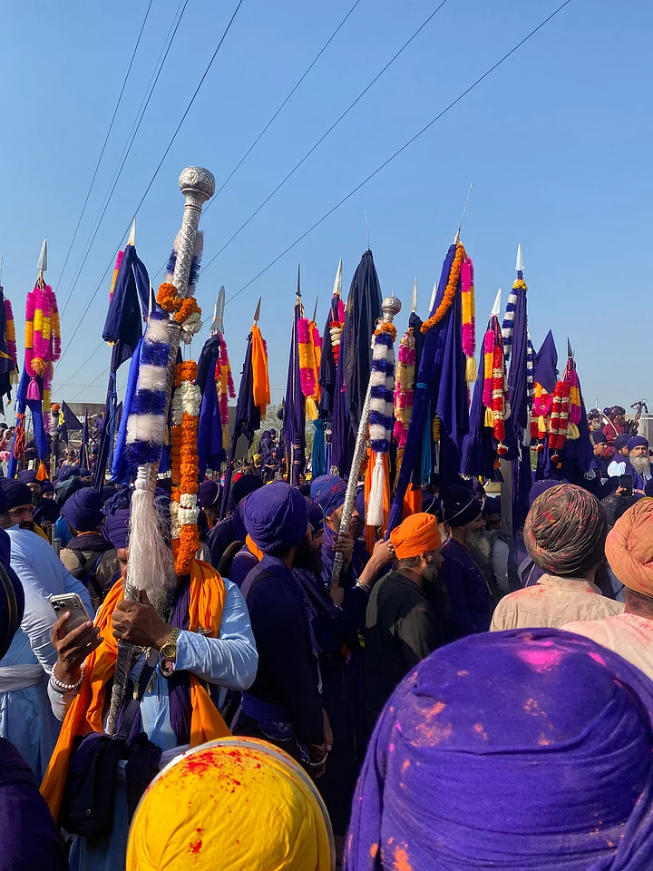 As I deboard the train on 4 March, the day of Holi, I am joined by my friend, Balpreet Singh, and two more of his companions – all from Delhi. They have been attending the festival for many years now, and were willing to show me around. Upon exiting the station, we are greeted with the warcries of Bole So Nihaal and devotional hymns playing on loudspeakers mounted atop slow-moving vehicles. We walk.