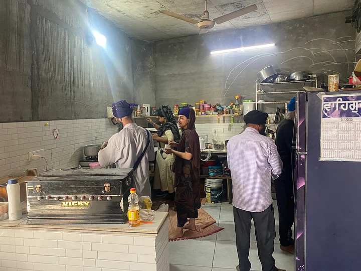 Devotees from across the country, many from Delhi-NCR, are staying at their home. Many of them are also Nihang Sikhs. The family has opened up their kitchen – everyone is free to walk in and grab whatever they like. Ishmeet is also preparing fresh, hot meals at the request of the sangat, the holy congregation.