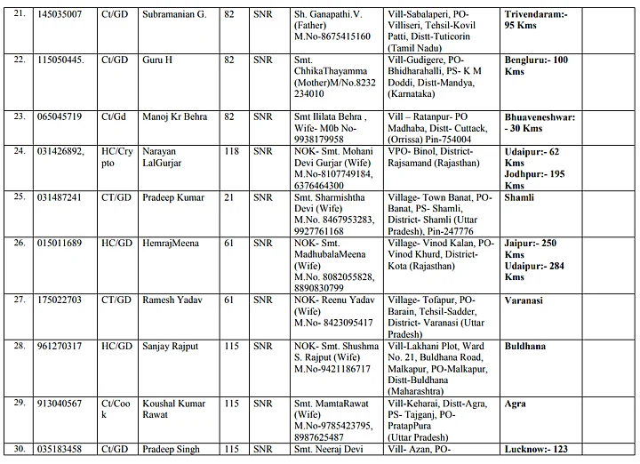 The list also includes two jawans each from Bihar and Tamil Nadu. Ratan Kumar Thakur from Bihar’s Bhagalpur district and Sanjay Kumar Sinha from Patna district were among those who died in the bombing on Thursday.