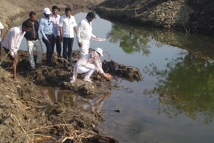 The state government rejuvenated over 5,000 water bodies across the state between 2017-2019, mostly through the GDGS (Gaalmukt Dharan, Gaalmukt Shivar) Scheme. At this time, donors were providing the rental charges for the machines for silt removal, the state paid for the diesel, and the farmers for the carting of silt.