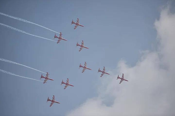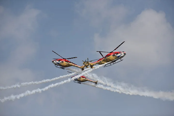 IAF's 9 Surya Kiran Hawks, 4 Sarang ALHs Dhruv Display Might