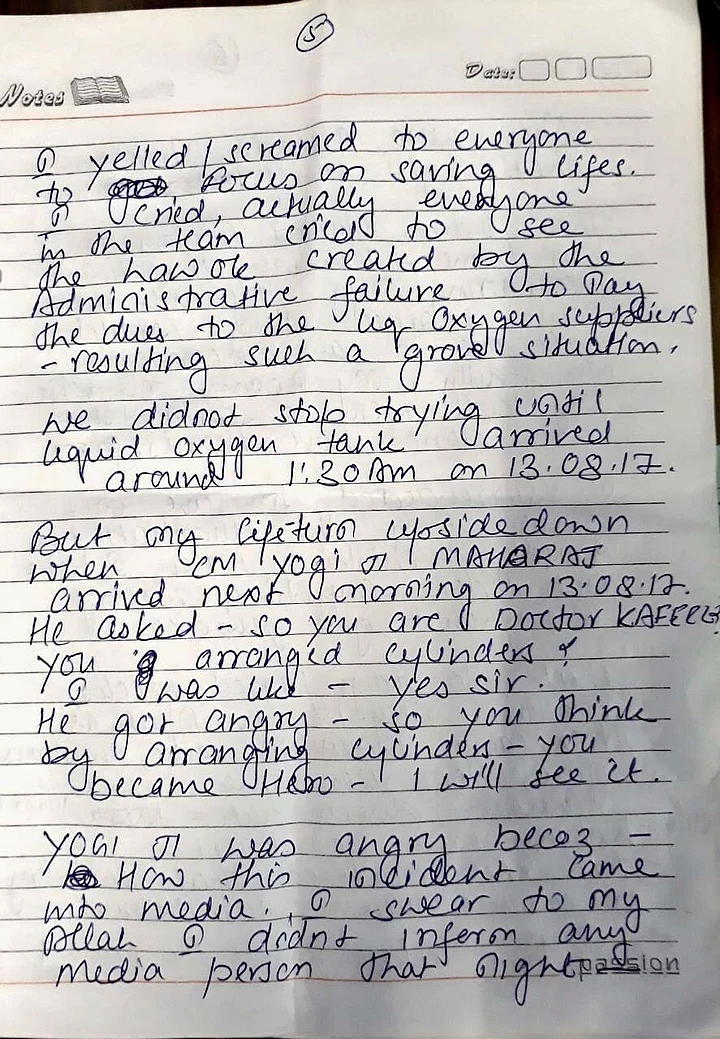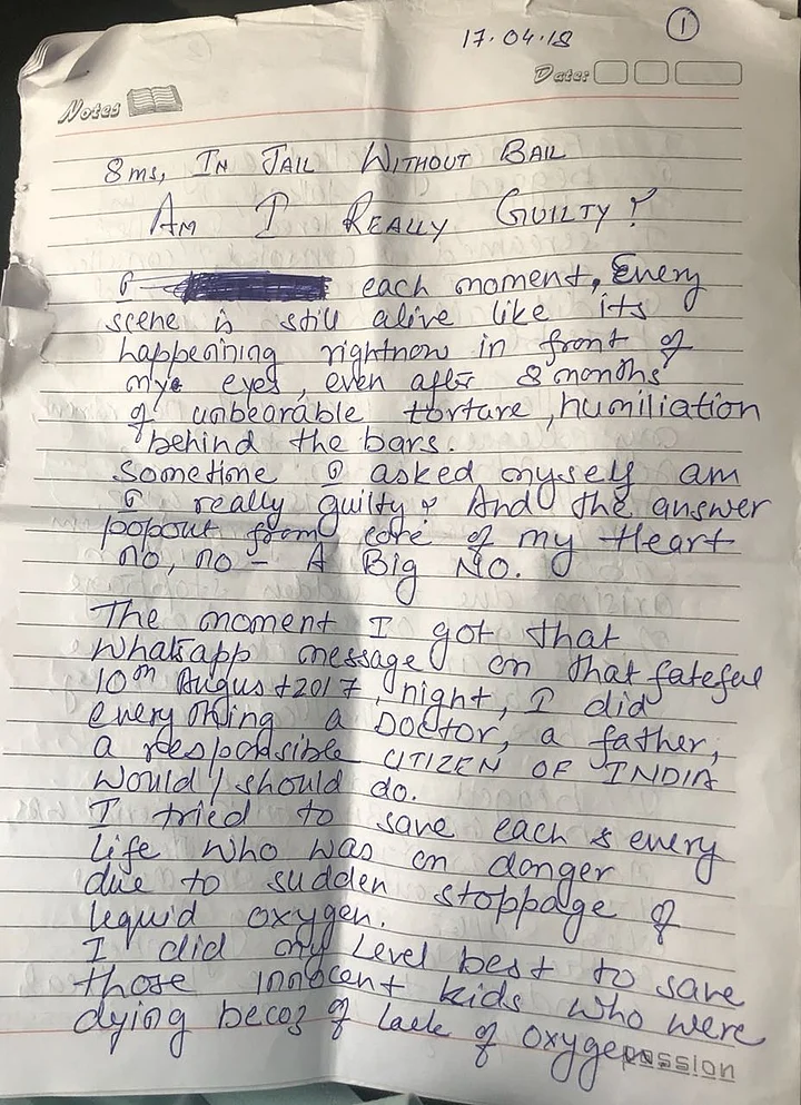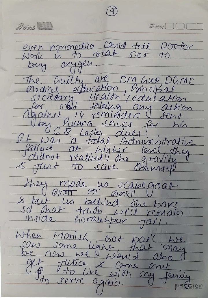 Khan further alleges that those who should be held responsible are the DM Gorakhpur, DGME (director general of medical education), principal secretary health education, who have made him and the others the scapegoats to escape punishment.