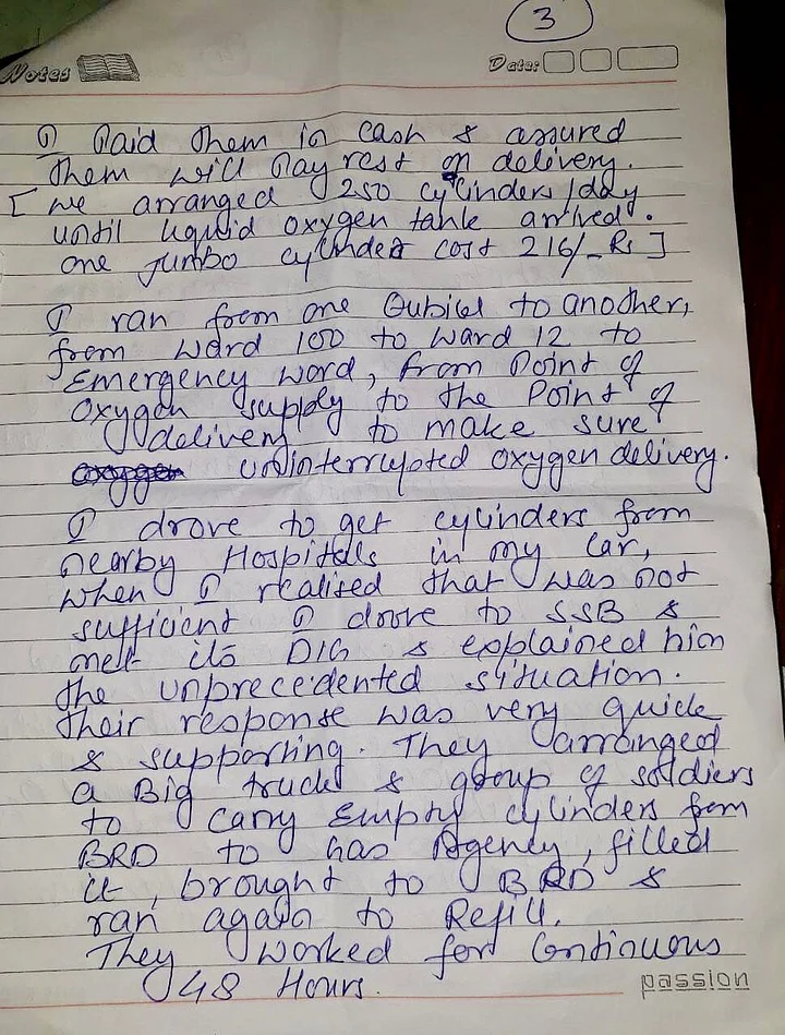 I begged gas suppliers – Modi Gas, Balaji, Imperial Gas, Mayur Gas Agency, all the hospitals around around BRD Medical College – after arranging their contact numbers for jumbo cylinders to save hundreds of lives of innocent kids.