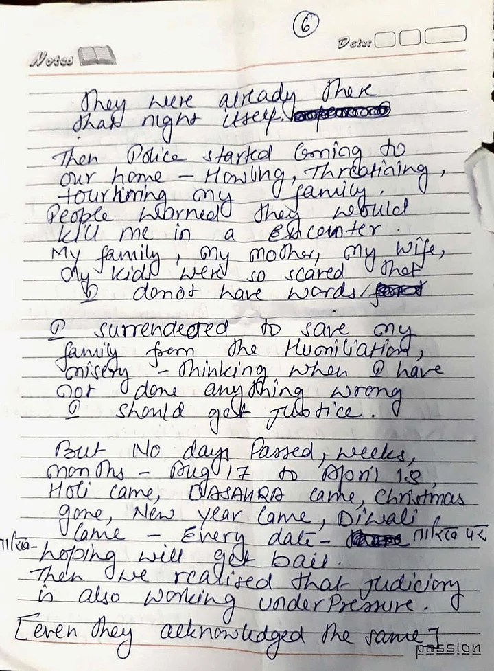 Following this, he alleges that the police began coming to his house and hounding his family, fearing which he surrendered before the police, despite having done no wrong.