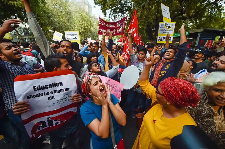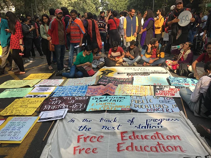 Amid chants demanding to make education affordable for all, hundreds took to the streets in Delhi on Saturday, 23 November, in support of the students' protest against the hostel fee hike in Jawaharlal Nehru University (JNU).