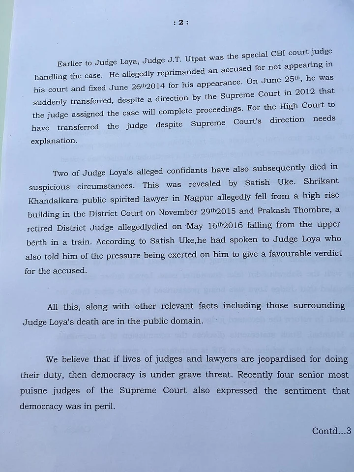 “We feel that that Judge Loya’s death was suspicious. There have been two other suspicious deaths. These are the concerns we raised with the President and he assured us that something would be done,” Gandhi said.