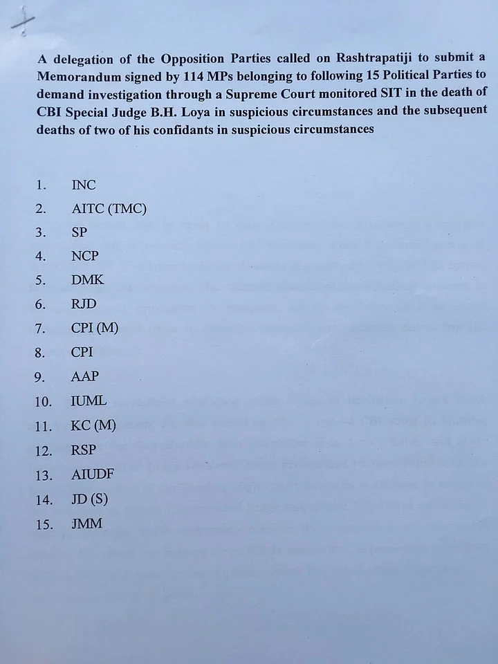After meeting President Ramnath Kovind, the representatives of Opposition parties told reporters that they have requested an independent investigation into the “mysterious” death of special CBI judge BH Loya.