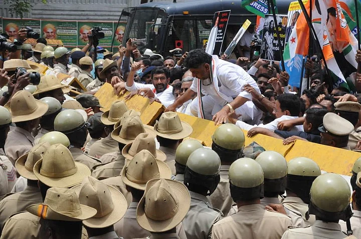 The Congress leaders and workers then went on protest in front of the Vidhana Soudha.