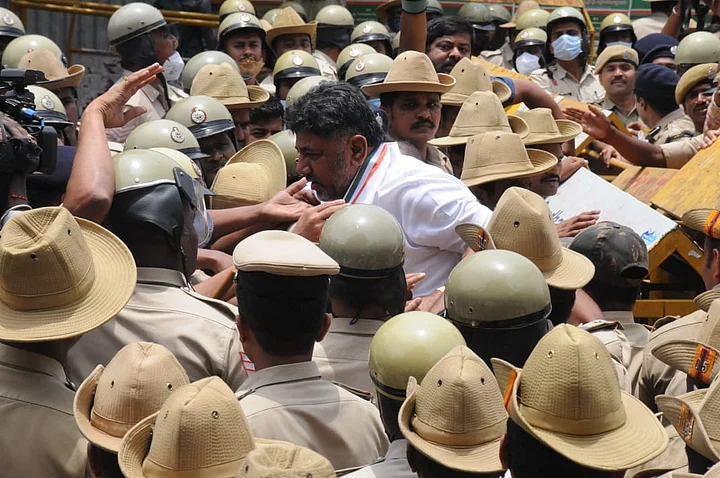 Karnataka Congress leaders DK Shivakumar, Siddaramaiah, and others were detained by the state police on Thursday, 14 April, after they were stopped from marching towards Chief Minister (CM) Basavaraj Bommai's residence to demand for Karnataka Minister KS Eshwarappas's resignation in connection with contractor Santhosh Patil's death.