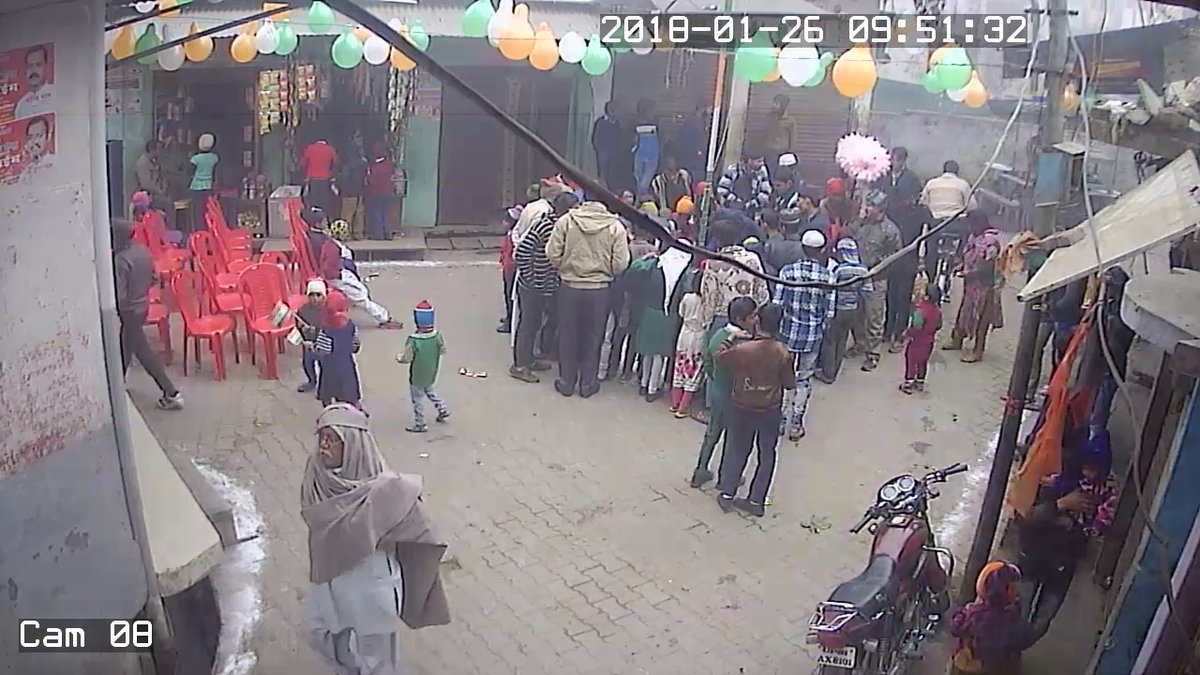 The footage shows what happened at the Vir Hulka Hamid Chowk of Hulka Mohalla in Kasganj from 8:56 am to 9:54 am on 26 December.