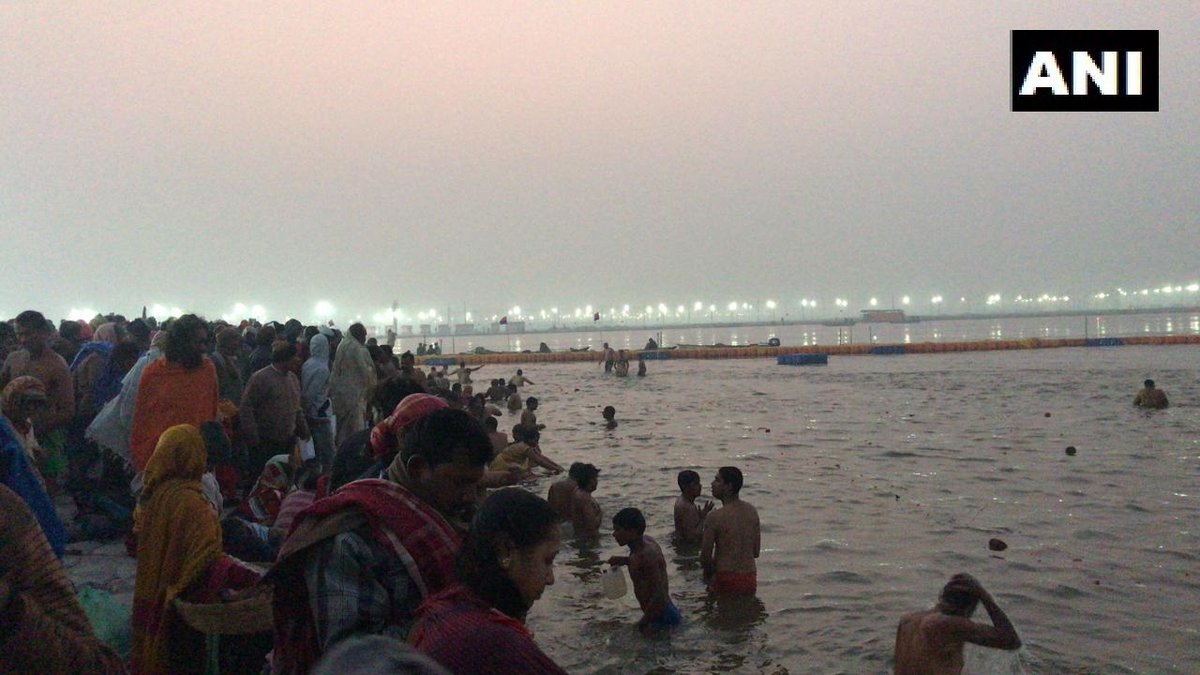 Thousands of devotees, who have reached Uttar Pradesh's Prayagraj for the Kumbh Mela, took a holy dip at Sangam Ghat on Monday, 14 January, celebrating the auspicious day of Makar Sankranti.