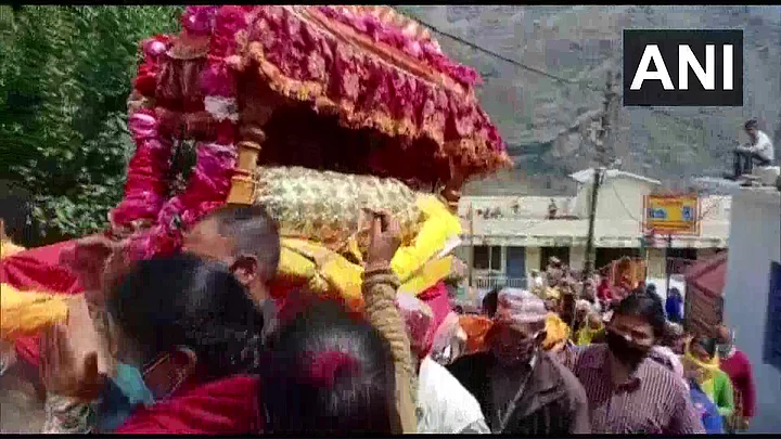 Amid the coronavirus lockdown, devotees in Uttarakhand on Wednesday, 13 May, took out a procession from Narsingh temple in Joshimath to Badrinath Temple ahead of the opening of the shrine’s portals, violating social distancing norms.