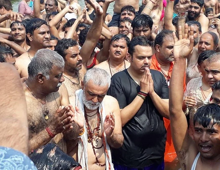 “It’s a divine experience,” Fadnavis said, after taking a holy bath at the Sangam.