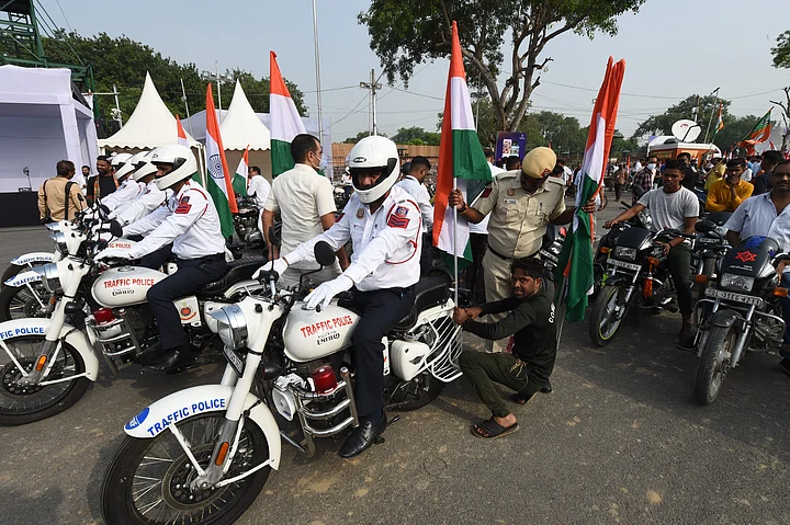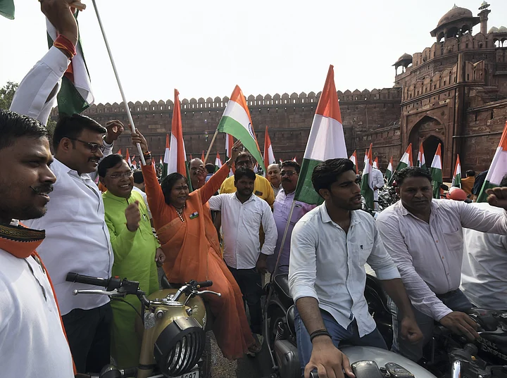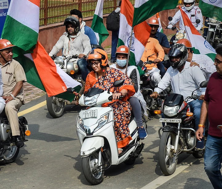 The Ministry of Culture organised a 'Tiranga bike rally' from the Red Fort to Parliament on Wednesday morning, 3 August, for Members of Parliament (MPs) from all parties.