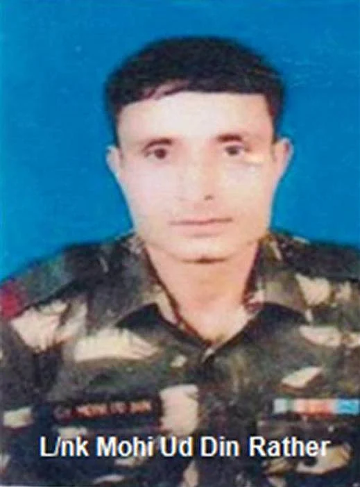 Lance Naik Gh Mohi ud Din Rather, a Kashmiri from Punchpora village in Bijbehara tehsil of Anantnag is survived by a paralysed father, mother, a two year old son and wife.