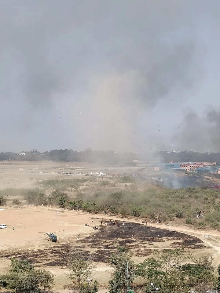 At least two choppers were pressed into service to vet the crash site and six fire tenders were deployed to douse the flames at the crash site.
