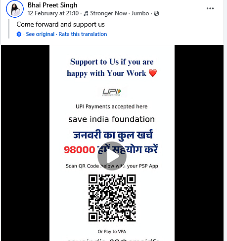 An appeal, along with a QR code, posted by Sirohi requesting people to support his work.