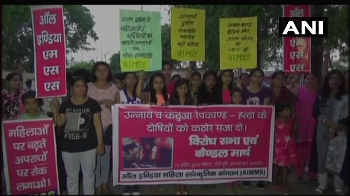 The All India Mahila Sanskritik Sangathan took out a candlelight march on Sunday in UP’s Moradabad demanding justice for the victims in the Kathua and Unnao rape cases.