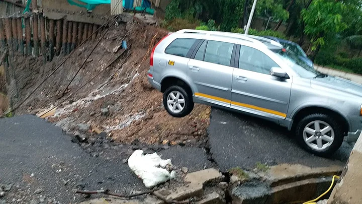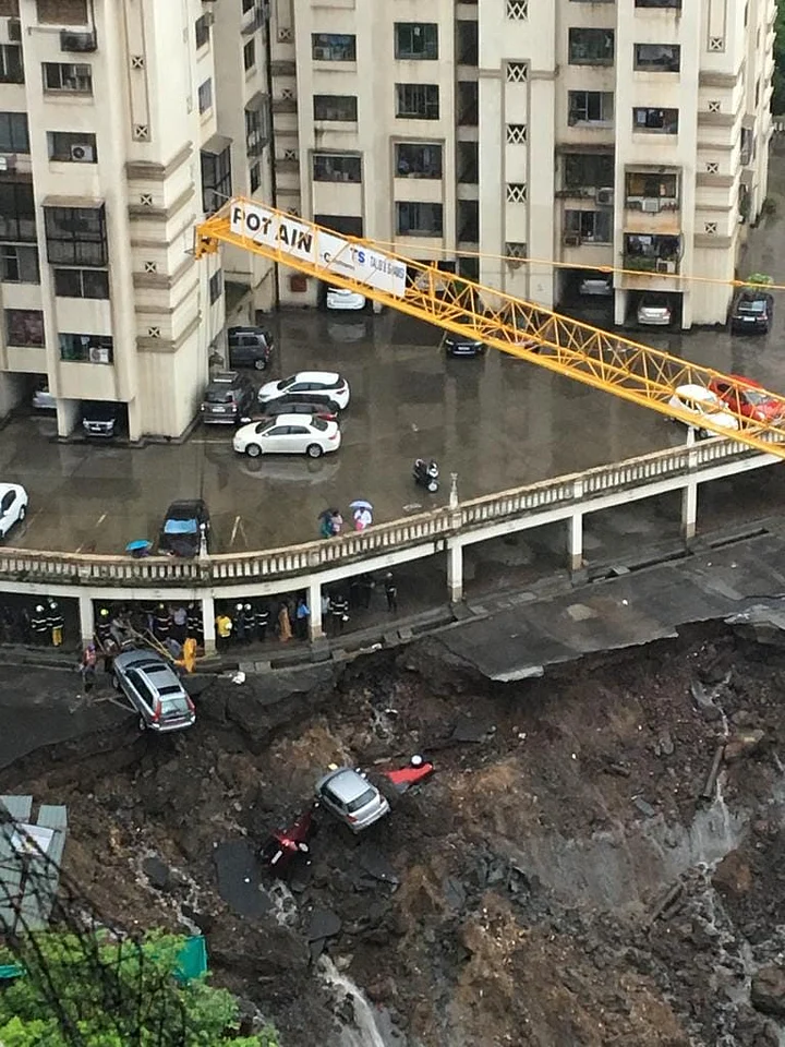 - 03/04Landslide between Lloyd estate and Dosti near Vidyalankar college in Wadala.Landslide between Lloyd estate and Dosti near Vidyalankar college many cars were damaged in Wadala.(Photo: Twitter/@SkymetWeather)