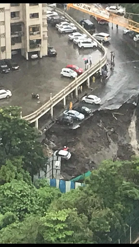 - 04/04Landslide between Lloyd estate and Dosti near Vidyalankar college in Wadala.(Photo: Twitter/@SkymetWeather)
