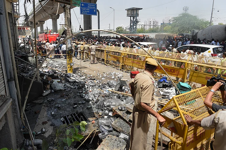 While an FIR has been registered under relevant sections of the IPC, the Delhi Police has arrested two people – Harish Goel and Varun Goel, in light of the incident. Manish Lakra, identified as the owner of the building, is currently absconding.