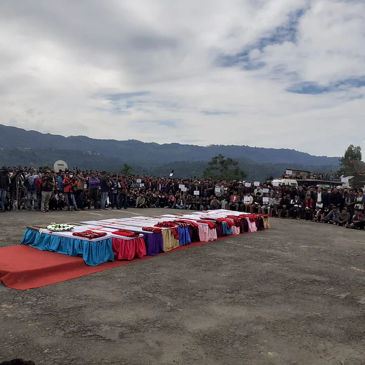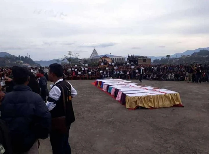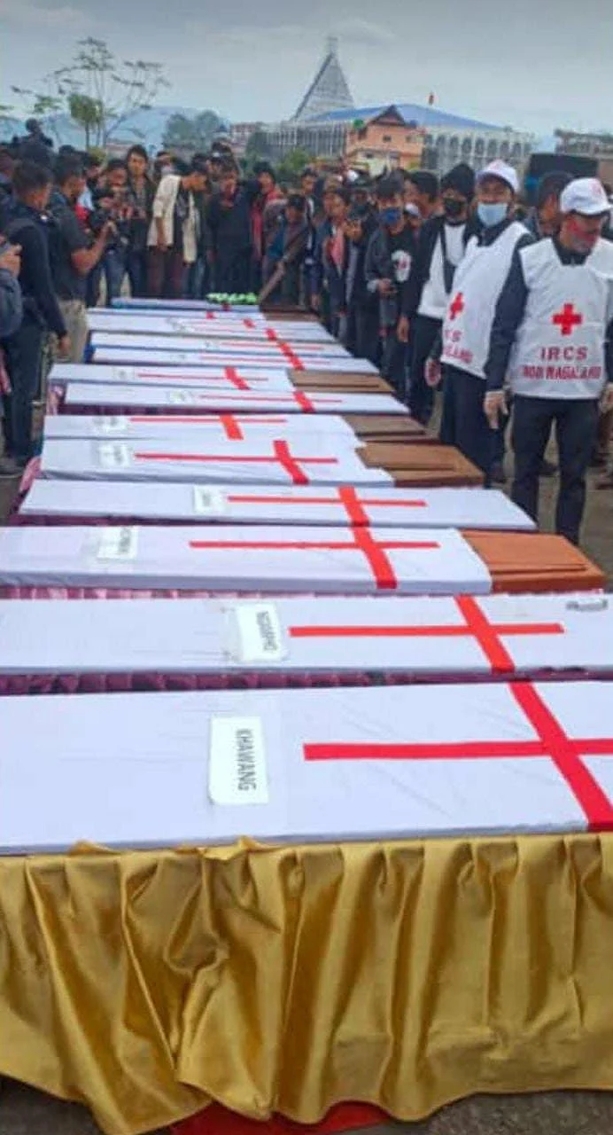 The funeral services for those killed in the firing incident were held at the helipad ground in Nagaland’s Mon district on Monday, in the presence of Chief Minister Neiphiu Rio, Deputy Chief Minister Yanthungo Patton, and Naga People’s Front (NPF) leader Taditui Rangkau Zeliang.