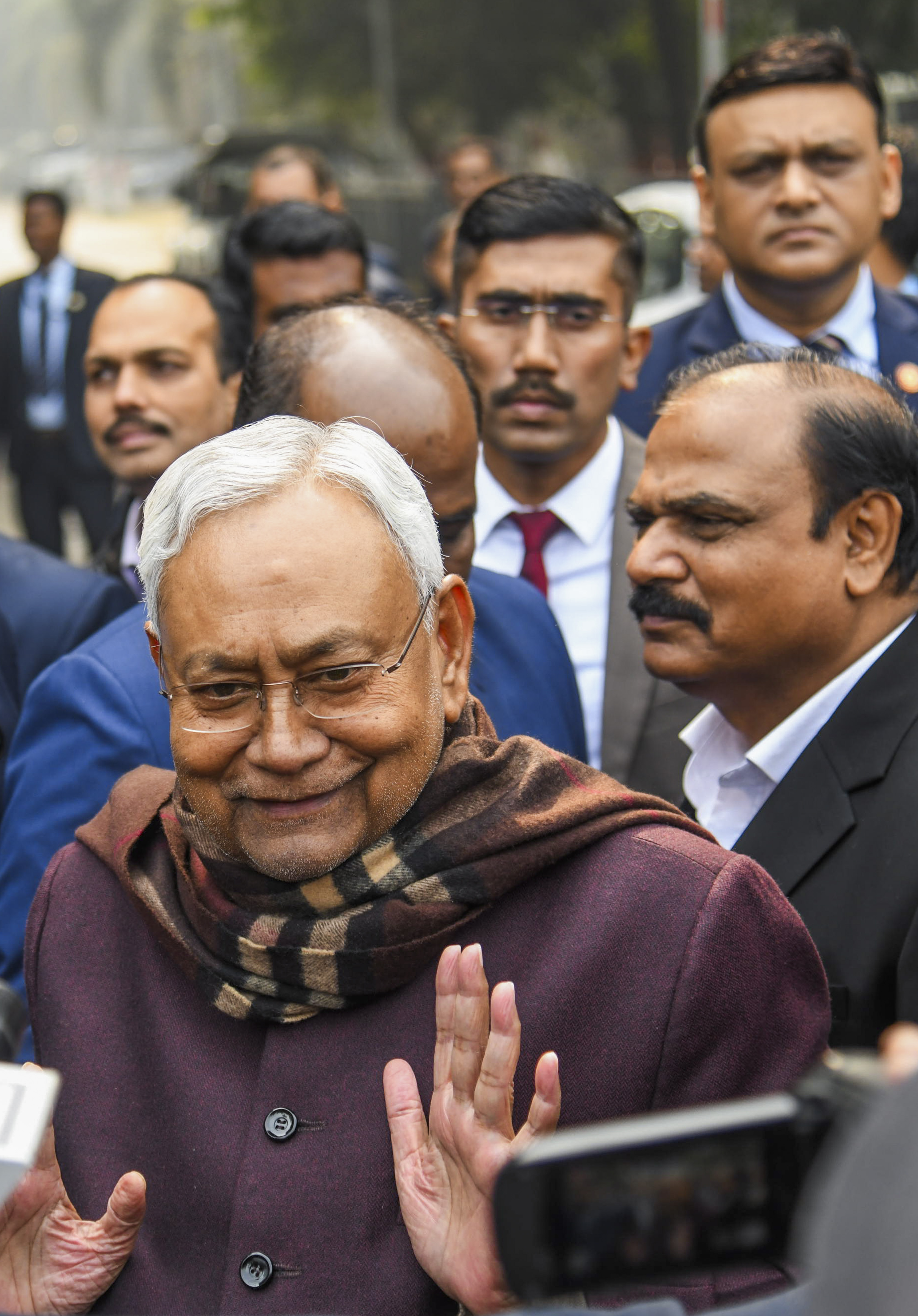 Developments before the ceremony: Shortly after tendering his resignation to the Governor on Sunday morning, Kumar met with Bharatiya Janata Party (BJP) leaders, following which he staked claim to form the government with the support of 128 MLAs.