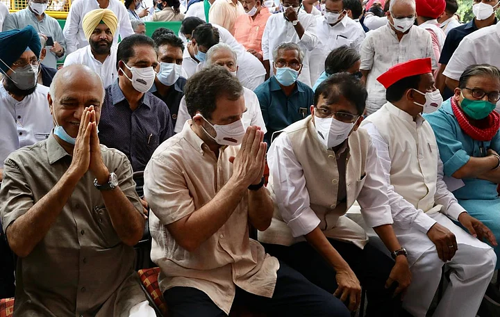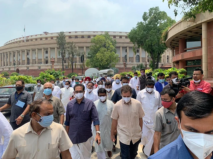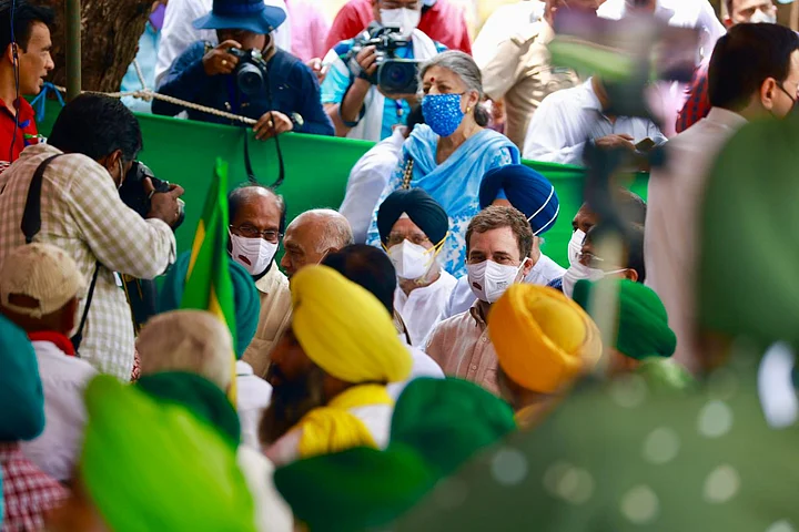 Opposition leaders, including Congress MP Rahul Gandhi, joined the farmers protesting against the three contentious farm laws at Delhi's Jantar Mantar on Friday, 6 August. They also visited the Kisan Sansad, and watched the proceedings from the visitors' gallery.