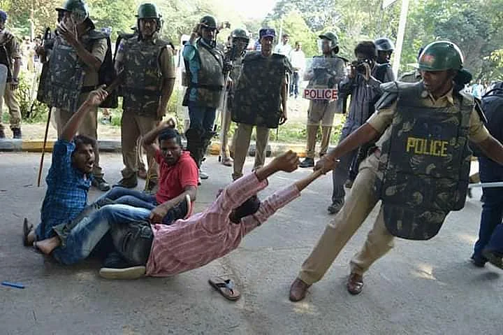 Following this, a video on Sunday night showed policemen in riot gear breaking down the door of a hostel room and assaulting students with lathis.