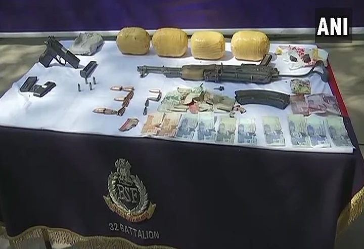 The force said it has recovered an AK-47 assault rifle, a pistol, over two dozen bullet rounds, four kilograms of heroin, a Pakistani mobile phone with a SIM, and Rs 20,000 Pakistani currency.