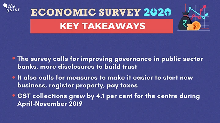 Finance Minister Nirmala Sitharaman tables the Economic Survey in the Parliament, pegging growth rate for financial year 2020-21 at 6-6.5%.
