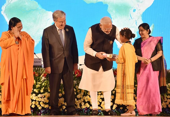 UN Secretary General Antonio Guterres, External Affairs Minister Sushma Swaraj, Minister of Drinking Water and Sanitation Uma Bharti and other eminent personalities were present on the occasion.