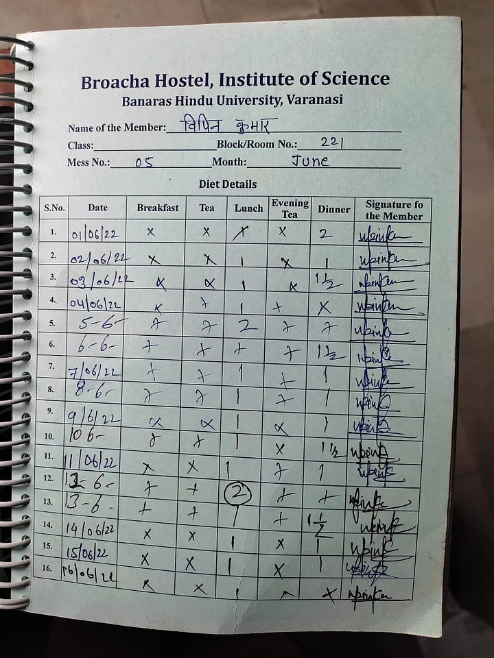 The hostel records produced by Vipin do indeed show he has been on the campus for the entire month of June and has been regularly having meals from the hostel mess.