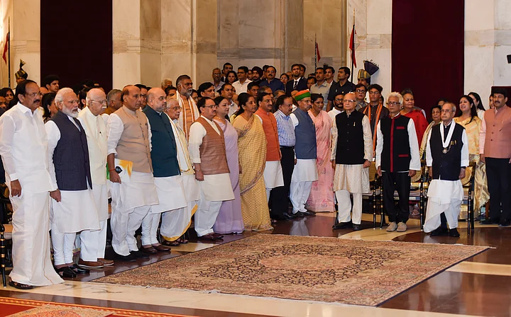 Vice President M Venkaikah Naidu, Prime Minister Narendra Modi, Home Minister Amit Shah, Defence Minister Rajnath Singh, several Union Cabinet Ministes, Assam Chief Minister Sarbananda Sonowal were among those present at the function held at the imposing Durbar Hall.