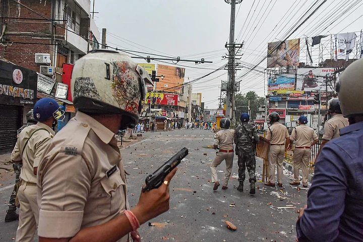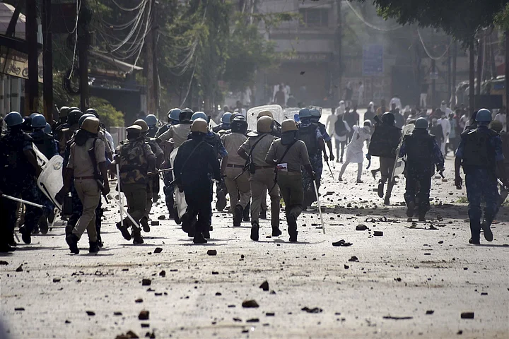Visuals from the state showed stone-pelting, arson, and sloganeering, even as police tried to quell the protests