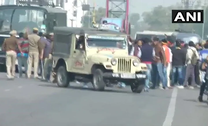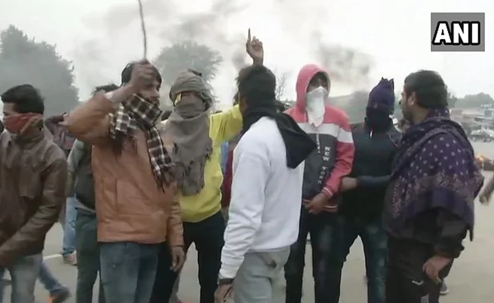 In Mathura, agitators stopped trains at the Bhuteshwar railway station, with the police coming down hard on the protesting mob.