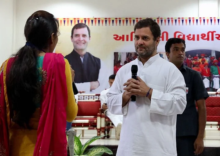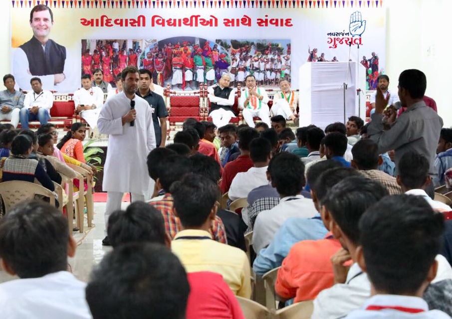 - Rahul Gandhi interacted with tribal students in Chhota Udaipur on the final day of his Navsarjan Yatra
