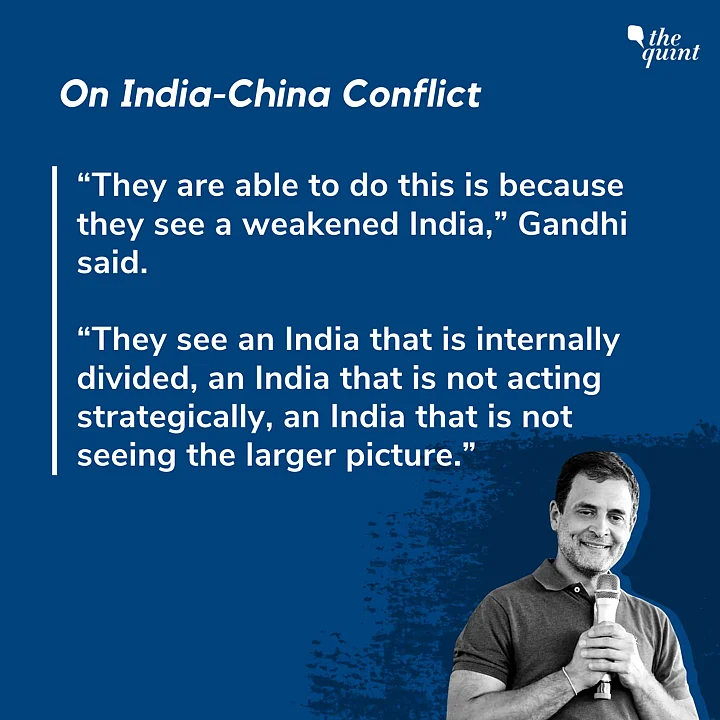 “Why they are able to do this is because they see a weakened India,” Gandhi said, according to PTI. “They see an India that is internally divided, an India that is not acting strategically, an India that is not seeing the larger picture.”