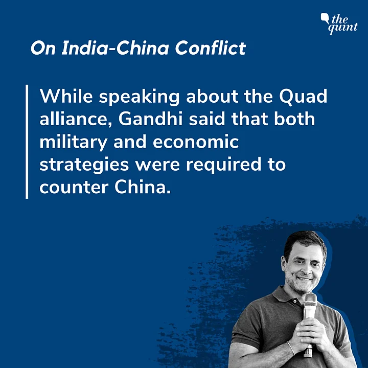 According to Scroll, Gandhi, while speaking about the Quad alliance, said that both military and economic strategies were required to counter China.