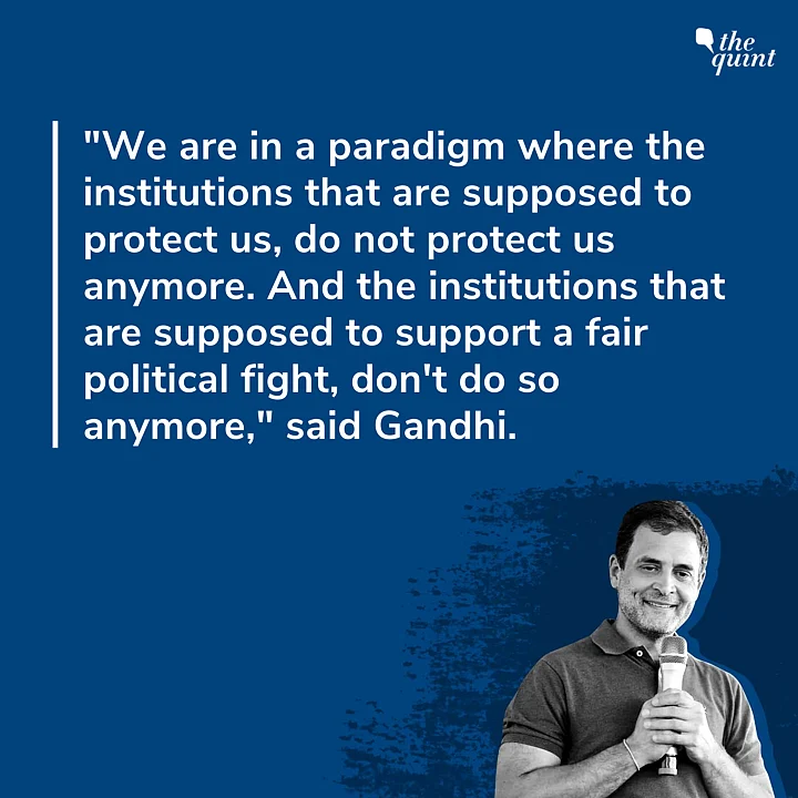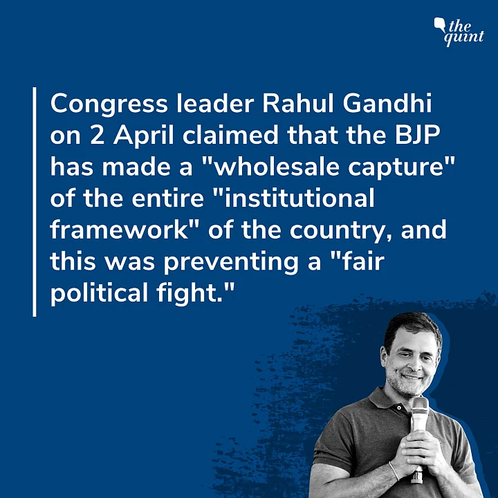 Congress leader Rahul Gandhi on Friday, 2 April, claimed that the ruling BJP has made a "wholesale capture" of the entire "institutional framework" of the country, and this was preventing a "fair political fight".