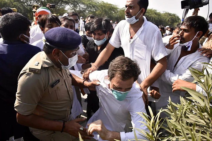 "I want to walk to Hathras alone. Please tell me under which section are you arresting me,” Gandhi is seen asking in a video shared by Congress Twitter handles.