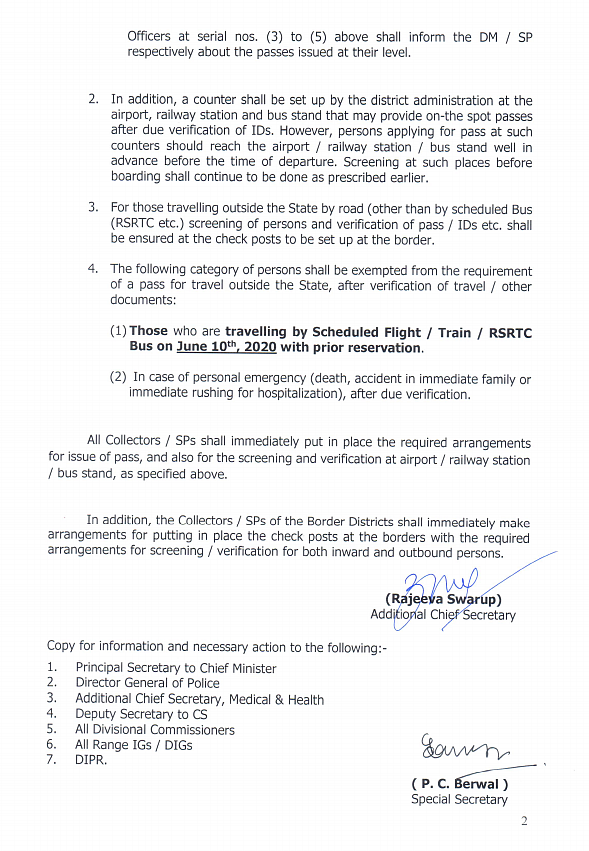People coming into Rajasthan by road (private bus, taxi, personal transport) will be screened at check post to be established on borders and personal IDs will also be checked, it said further.