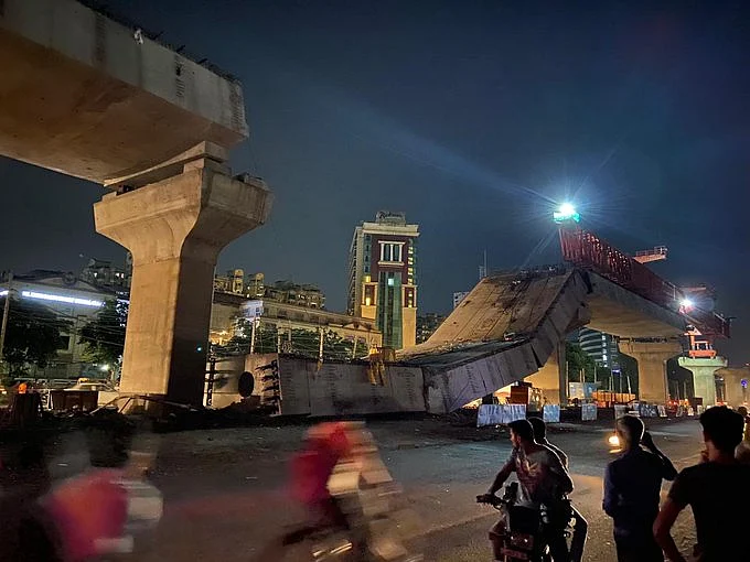 A section of an under-construction flyover collapsed in Gurgaon’s Sohna Road area late on Saturday night, 22 August. While news agency ANI has reported that there were no injuries, Deputy Chief Minister Dushyant Chautala said two people were injured after which they were taken to a hospital.