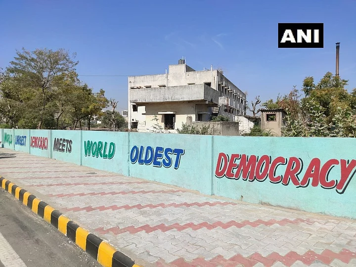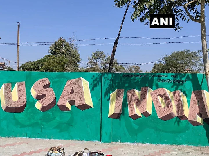Meanwhile, the walls opposite Motera Stadium are being painted with images of PM Modi and President Trump and slogans.