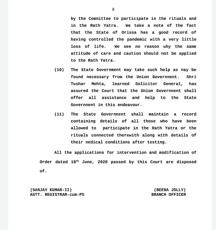 - 01/02Supreme Court's order in the Jagannath Yatra case. (Photo: Bar & Bench)