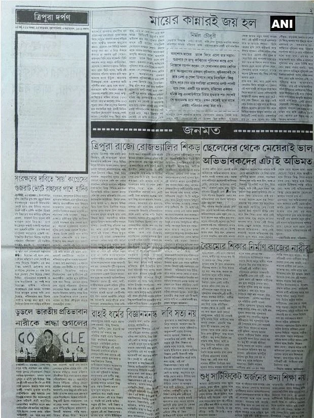 Barring Daily Desher Katha, the mouthpiece of the ruling CPI-M, all other newspapers in Tripura left their editorial columns blank on 23 November, protesting against the killing of journalist Sudip Datta Bhowmik.