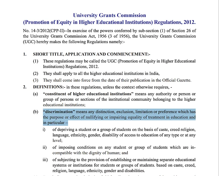 The clause in UGC’s new regulations, which has become the bone of contention, is 3c which defines caste-based discrimination as “discrimination only on the basis of caste or tribe against the members of the Scheduled Caste (SC), Scheduled Tribe (ST), and Other Backward Classes (OBCs).” The petitioners reportedly argued that this definition excludes individuals from the general category and that discrimination cannot be presumed to occur only against one section of the society.