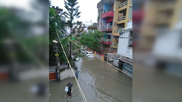 Videos and photographs shared on social media painted a grim picture of a waterlogged Patna. One widely circulated video shows a man who broke down after his rickshaw got stuck in the water.