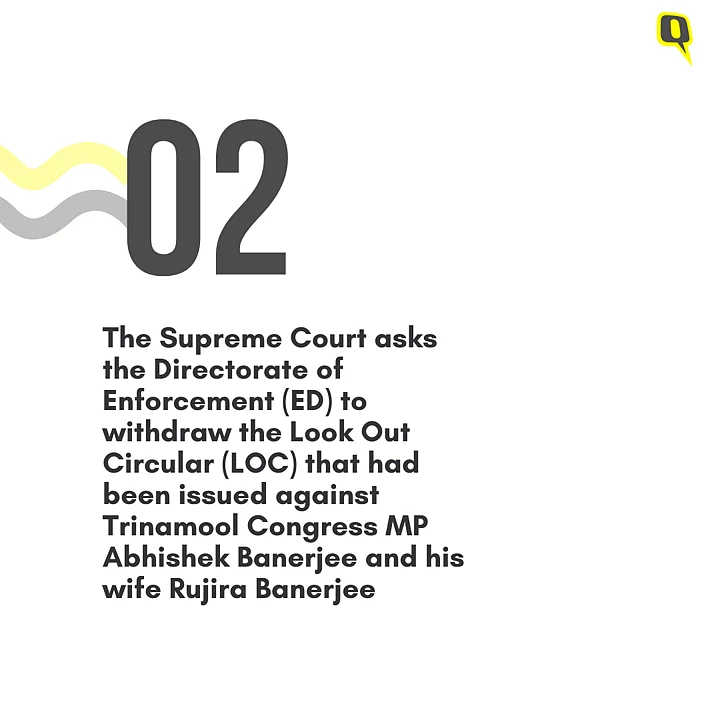 The Supreme Court issued a directive to the Directorate of Enforcement (ED) to withdraw the Look Out Circular (LOC) that had been issued against Trinamool Congress MP Abhishek Banerjee and his wife Rujira Banerjee.